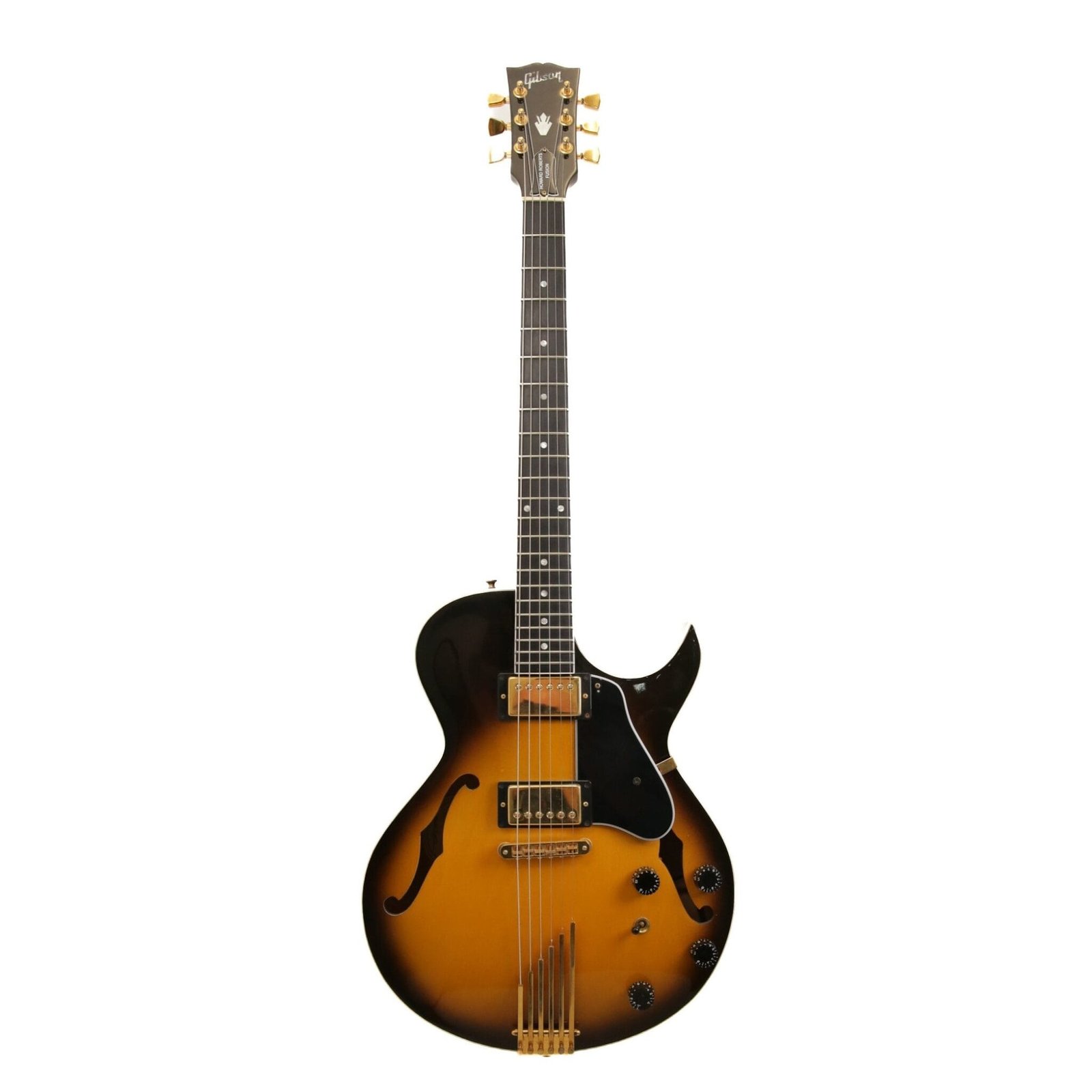 The Gibson Howard Roberts Fusion III  was introduced in 1991 and combined a number of signature features from some of Gibson's most successful models. The deep Florentine cutaway body extended the reach of the ES-175 with a neck that joins the body at the 16th fret. The intermediate 2 5/16" body depth is unique in the line, and represents a comfortable compromise between the full-sized archtops and the slimline ES-335 family. And like the latter model, the Fusion offers superior feedback resistance with an internal sound block that increases sustain. This edition featured significant upgrades such as gold hardware, a bound fingerboard, and an adjustable finger tailpiece borrowed from the Le Grande archtop model. A now collectable model, having ended production 2009, the Howard Roberts Fusion III is known for being a versatile and playable archtop equally suited for jazz and blues.