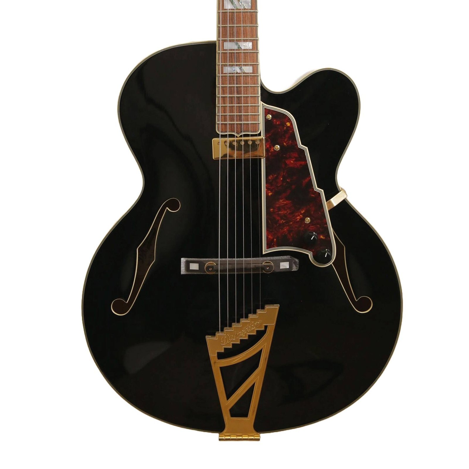 This 2018 D'Angelico Excel EXL-1 is a sophisticated tribute to the golden age of archtops, blending timeless Art Deco aesthetics with modern playability. Its 17-inch-wide, 3-inch-deep body features a laminated spruce top and flame maple back and sides, producing the woody, punchy midrange and rich resonance essential for classic jazz tones. This resonance is fully preserved by a floating Seymour Duncan Johnny Smith mini-humbucker, which allows the top to vibrate freely for a natural acoustic response. Complemented by a comfortable slim-C neck profile, the EXL-1 is adorned with iconic signature appointments, including the scroll-style headstock, Grover Imperial tuners, and the elegant gold stairstep tailpiece.
