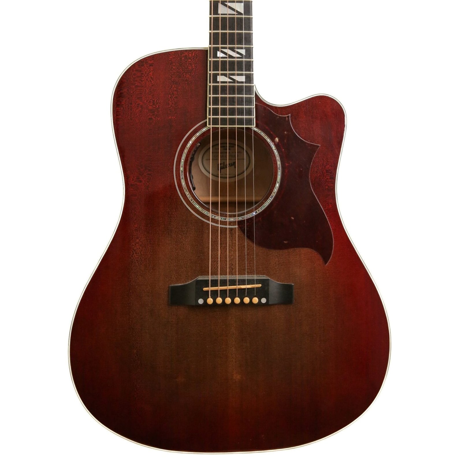 The Chroma Hummingbird forgoes the traditional use of mahogany back and sides for solid quilt maple.   Paired with a solid Sitka Spruce top, and finished with a hand-sprayed Black Cherry Nitrocellulose gloss lacquer, this player provides a bright, articulate, and powerful tone with excellent note separation and projection—perfect for cutting through a mix.
