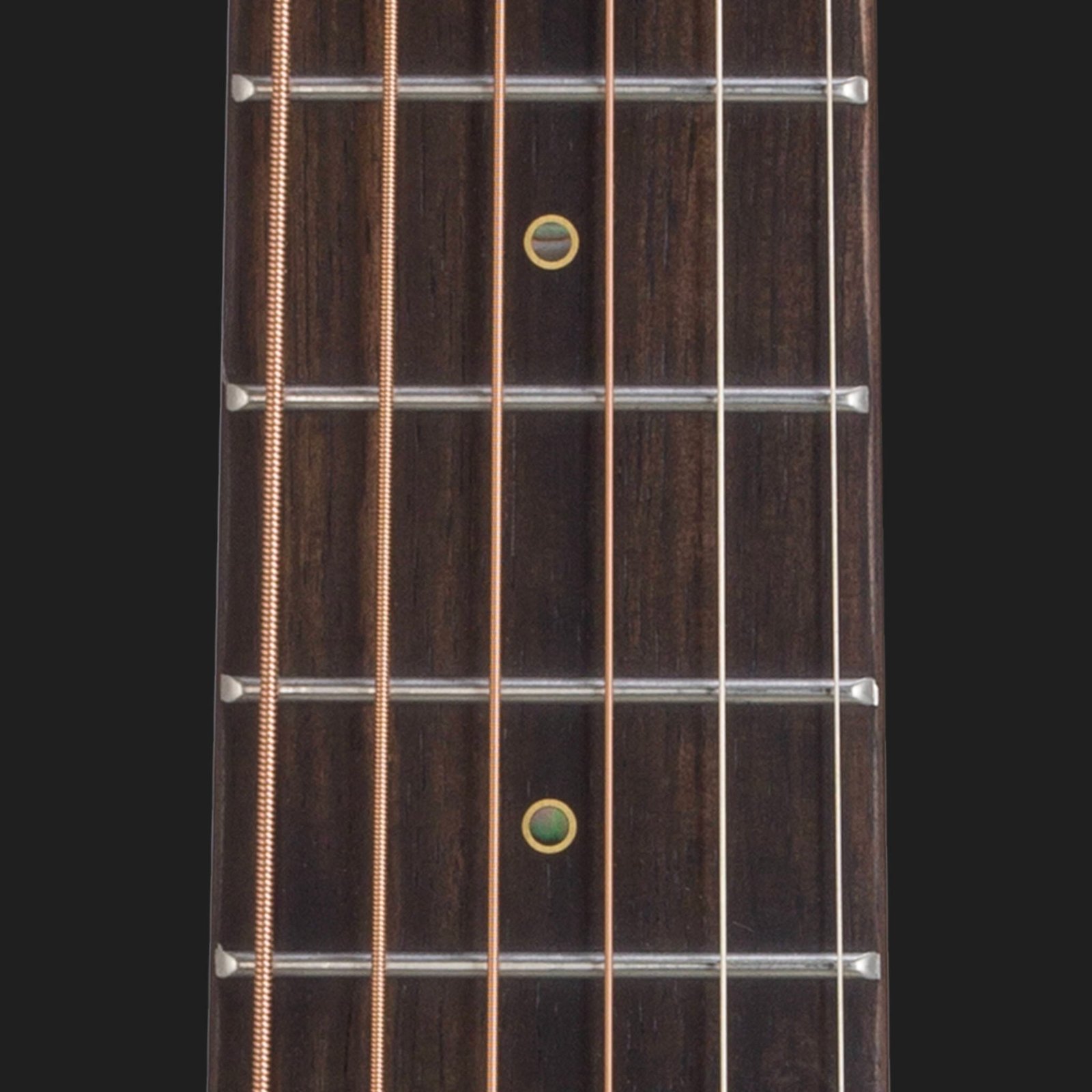 With a 5-piece mahogany/ebony layered neck, this guitar offers exceptional stability and durability. Its low-profile neck shape, coated with a fine satin finish, provides comfort for both rapid and extended playing sessions. The Amara ebony fingerboard features "Eagle Eye" fret markers, combining functionality with a subtle aesthetic appeal.