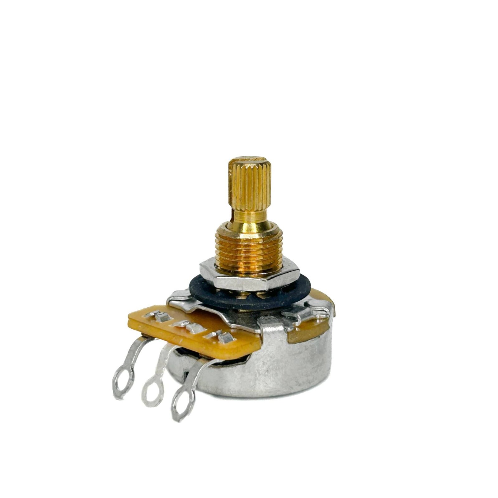 The Series 450G Guitar Potentiometer is the same robust high-quality guitar potentiometer that has become the industry standard for top guitar manufacturers. Featuring reduced shaft wobble, low noise output, and smooth rotational feel, the Series 450G is supplied with standard tin-plated rear cover and solder lug terminals.