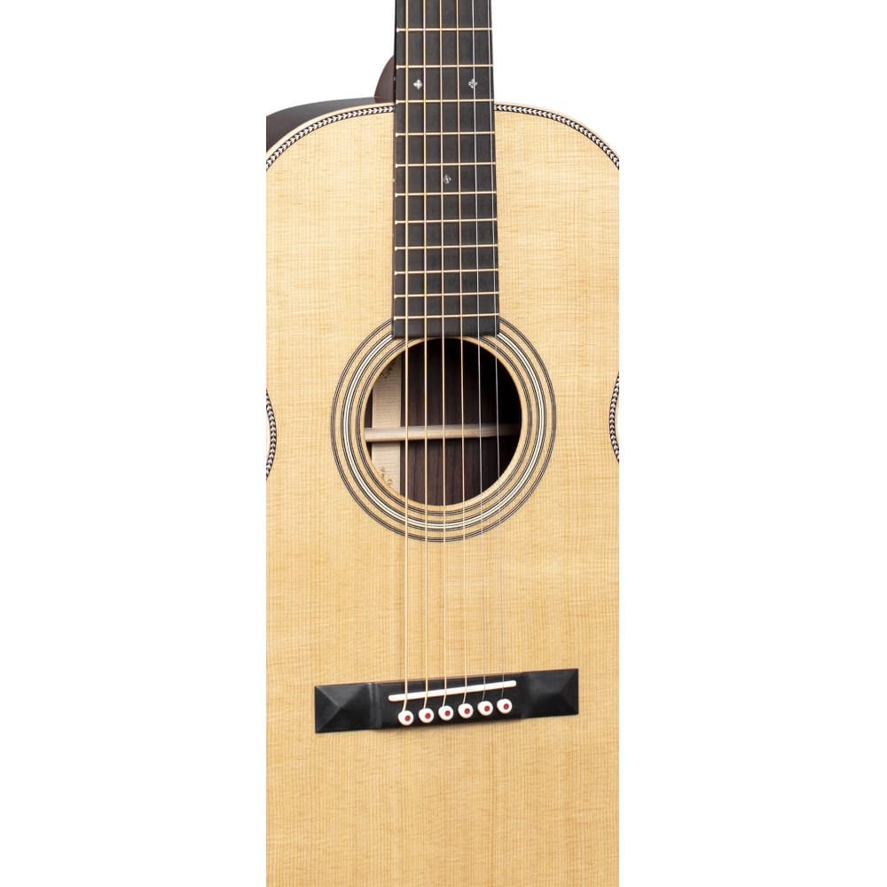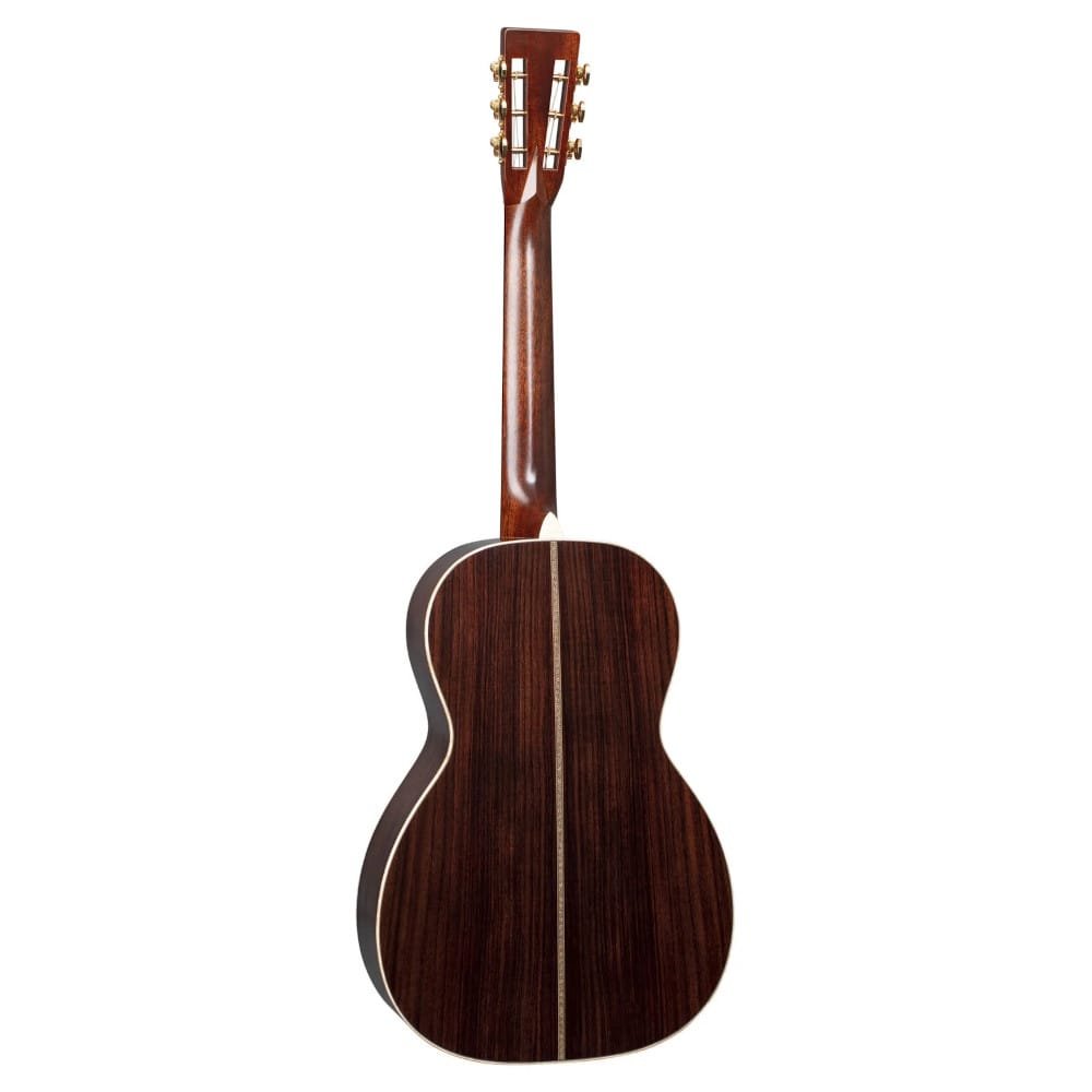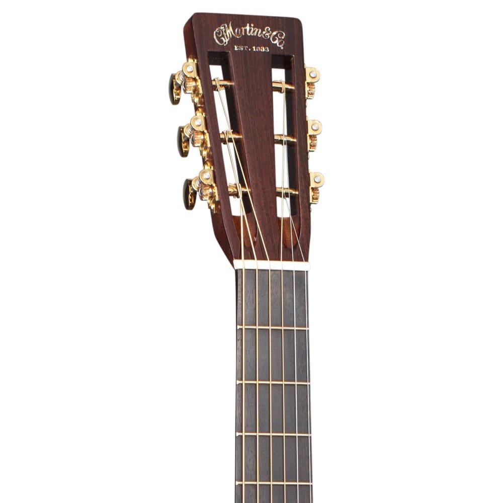 The 012-28 Modern Deluxe is a new take on Martin Vintage. This twelve-fret guitar is packed with custom features and modern technology that you have to see, feel, and hear for yourself. The vintage appointments include a spruce VINTAGE TONE SYSTEM® (VTS) top, a dovetail neck joint, and natural protein glue construction that giving it the rich, fully aged Martin tone that has inspired generations. The look is unlike anything in our production line with European flamed maple binding on the body, stylish gold frets, and a unique 1930s style script logo inlaid in pearl on the headstock. Some ultra-modern features include Liquidmetal® bridge pins with red dots and a composite carbon fiber bridgeplate that boosts volume, and a new neck shape that is slightly asymmetrical for maximum hand comfort up and down the fretboard. This guitar is anything but standard.