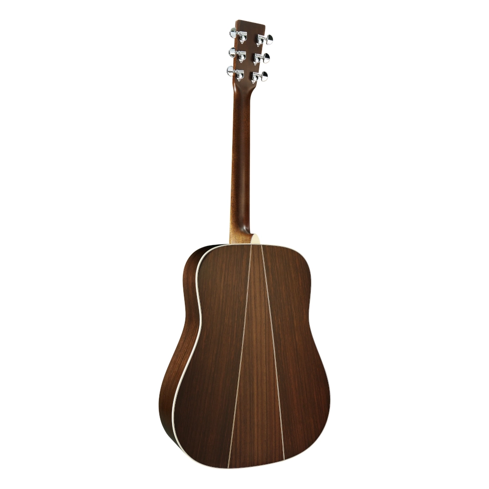 The Martin D-35 is a unique and trusted classic, first introduced in the mid-1960s and played by countless music legends ever since. Its Dreadnought body size delivers a bold, projective sound with strong bass, clear trebles, and rich overtones, making it a versatile choice for players of all styles. Handcrafted with a solid spruce top and solid East Indian rosewood back and sides, the D-35 stands out with its iconic three-piece back and lighter, non-scalloped 1/4" bracing, offering a balanced yet powerful tone. The satin neck, featuring a Golden Era (GE) Modified Low Oval profile, high-performance taper, and 25.4" scale length, ensures smooth, effortless playability. Complete with antique white binding, a bound ebony fingerboard with mother of pearl dot inlays, an ebony bridge with bone pins, and chrome enclosed gear tuners, the D-35 is built to carry on its legacy in your hands.