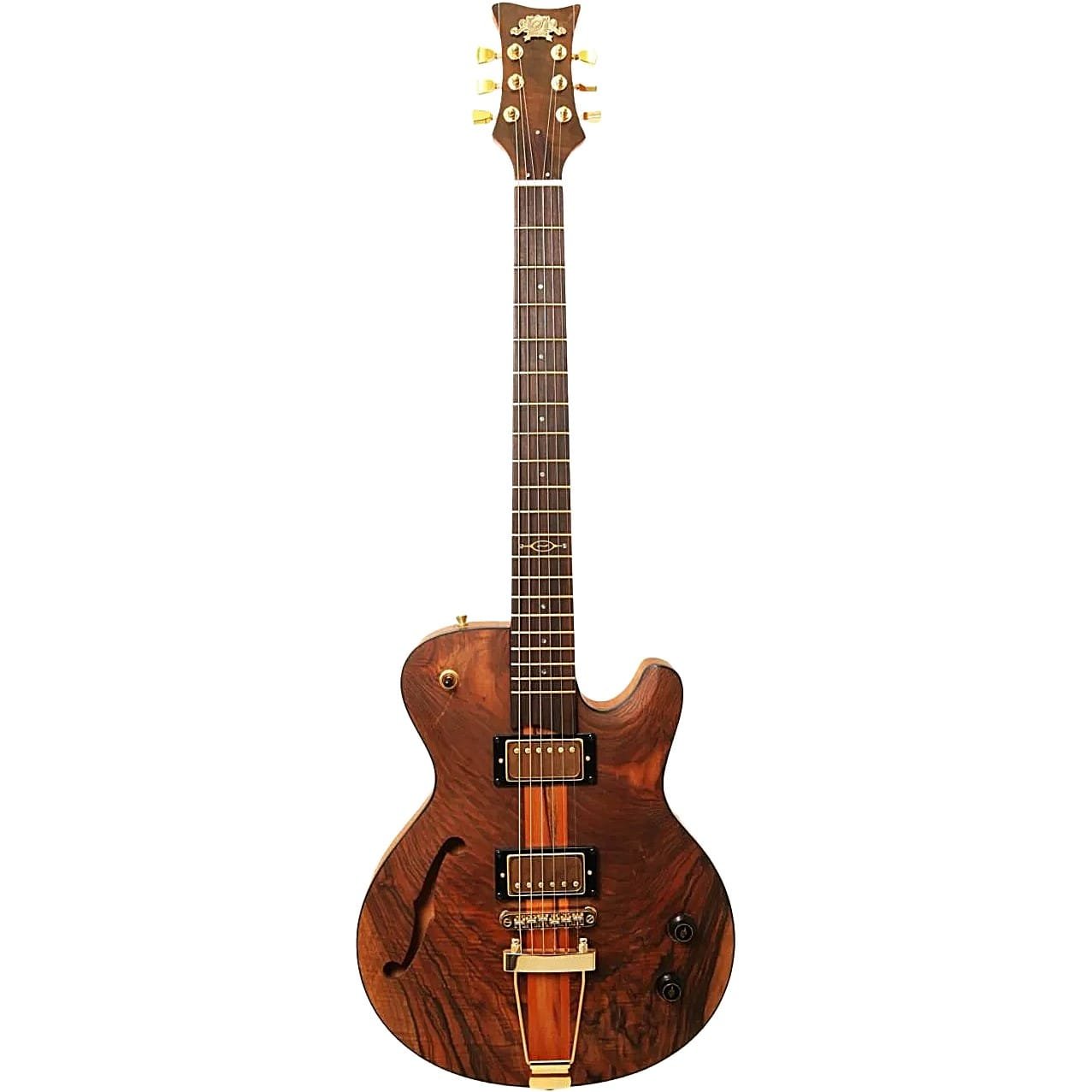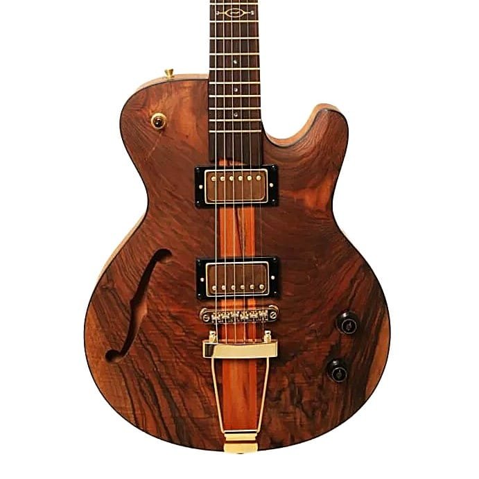 The Solace Marlburian Single Cut is a unique, high-spec instrument handcrafted in New Zealand, distinguished by its use of local and reclaimed tonewoods, featuring a chambered Recycled NZ Red Beech back and a beautiful Local Walnut top with a Matai feature. Its clear, articulate voice comes from a pair of Mr. Glyn's Integrity Humbuckers, which are complemented by premium hardware, including Grover Tuners, a Roller Bridge, and an elegant Trapeze Tailpiece. Finally, playability is ensured by a satin-finish Recycled Matai neck shaped to a comfortable '62 'C' profile, complete with a Rosewood fretboard and distinctive Paua shell fret dots.