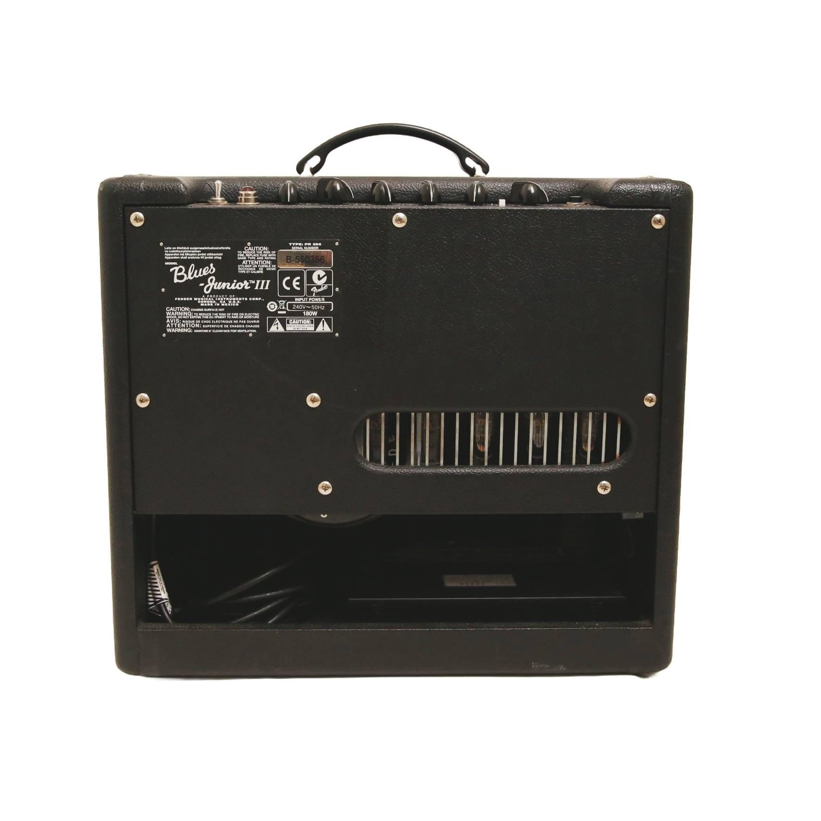 This c.2013 Fender Blues Junior III is a 15-watt, all-tube amplifier known for its classic Fender cleans and portable design. As part of the "III" series, this model includes the Lightning Bolt speaker by Eminence, upgraded "sparkle" circuit mods for clearer top-end, and easier-to-read black control panels.