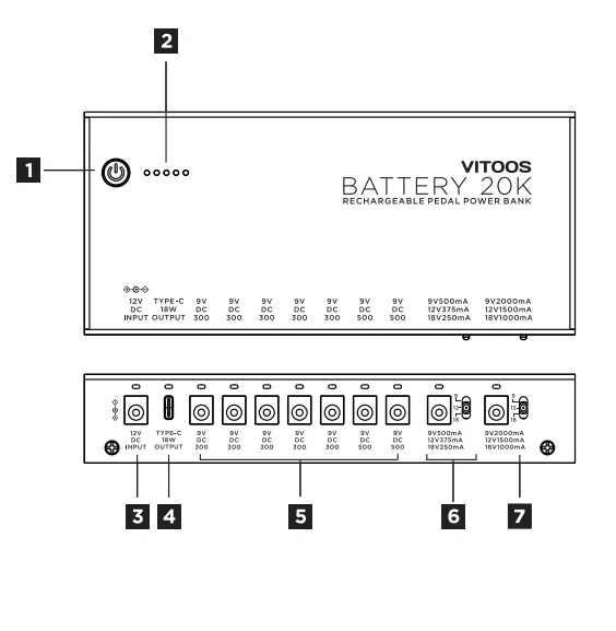 4: USB-C power output for charging mobile devices. Indicator LED lights up when a device is being charged.